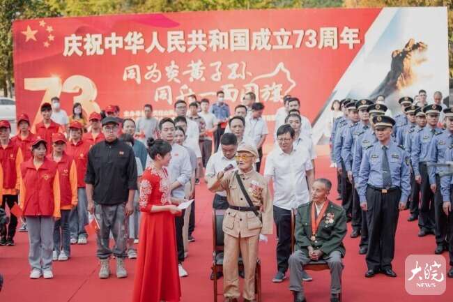升旗儀式上,抗美援朝老兵面對(duì)“保家衛(wèi)國(guó) 中國(guó)人民志愿軍抗美援朝72周年”大型畫(huà)板心情激動(dòng),現(xiàn)場(chǎng)重溫了他們?cè)趹?zhàn)場(chǎng)上殊死戰(zhàn)斗的不凡經(jīng)歷和感人故事。